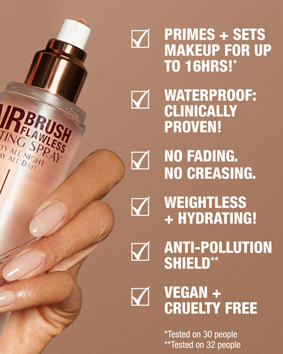 What it is: A lightweight, waterproof setting spray to prime and set your makeup for up to 16 hours* without melting, fading, or settling into fine lines.