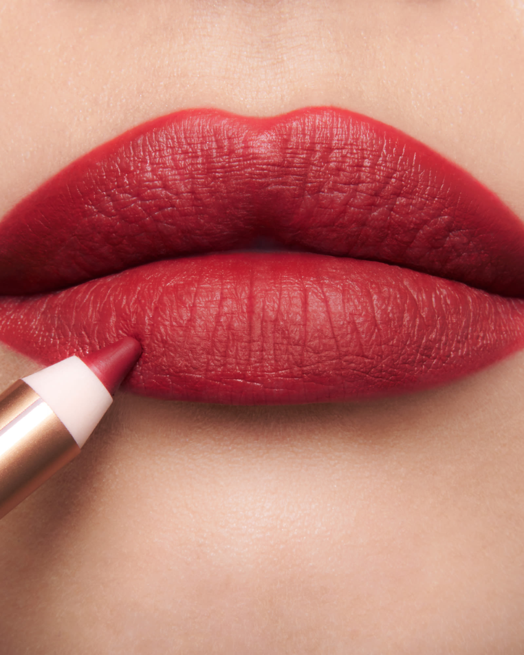 A striking, velvety lip liner in a classic red shade that defines, sculpts, and intensifies your lips for a bold, glamorous pout.